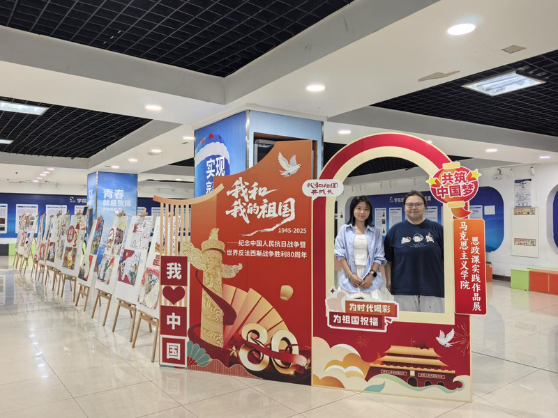 为纪念中国人民抗日战争暨世界反法西斯战争胜利80周年,激发青年学子的爱国热情和责任感,9月至10月,马克思主义学院举办了“我和我的祖国”思政课实践教学作品展。